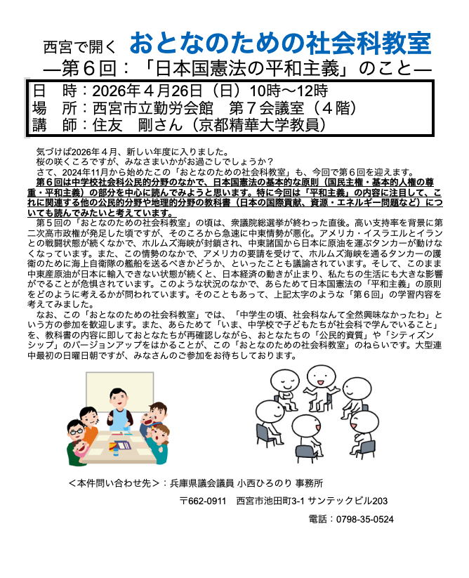 4/26(日)10時より西宮市勤労会館(第7会議室)にて開催します。